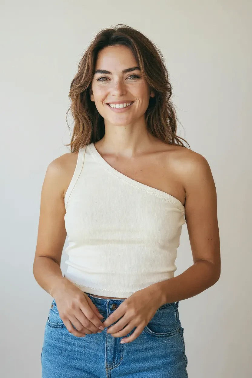 Blusa Canelada Um Ombro Só Off-White