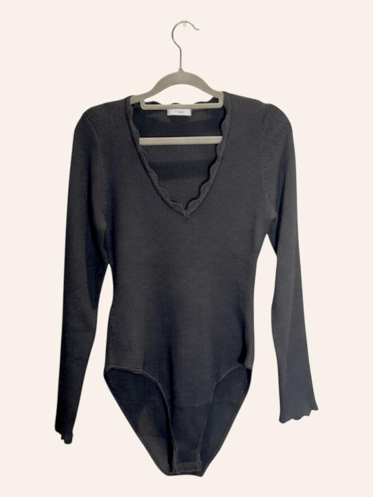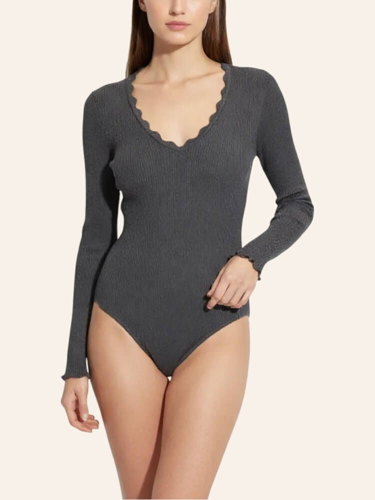 O Body Canelado Manga Longa é a peça chave para unir praticidade e estilo em qualquer ocasião. Confeccionado em malha canelada macia e com elasticidade, oferece conforto e ajuste perfeito ao corpo. Seu decote em V com acabamento ondulado garante um toque delicado e feminino, enquanto a modelagem com mangas longas o torna ideal para dias mais frescos.