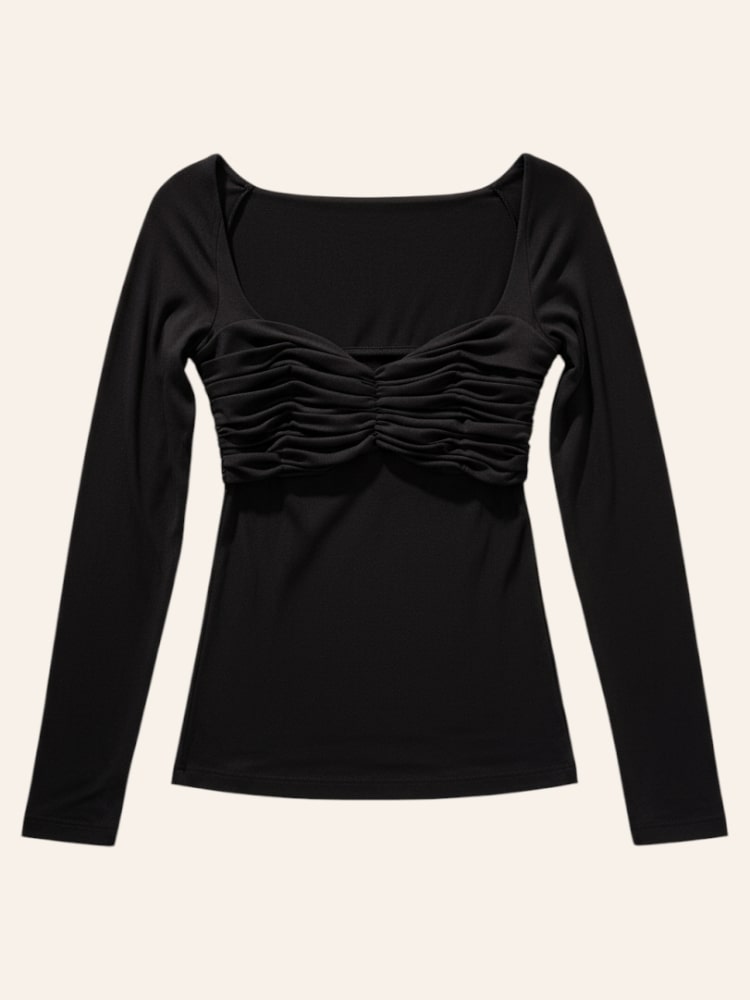 O Top Malha Vanessa combina conforto e elegância em uma única peça. Confeccionado em malha leve com toque macio, ele apresenta decote reto e franzido no busto, que valoriza a silhueta e adiciona um charme feminino ao visual. As mangas longas ajustadas trazem equilíbrio à modelagem, tornando o top ideal para composições sofisticadas e modernas.