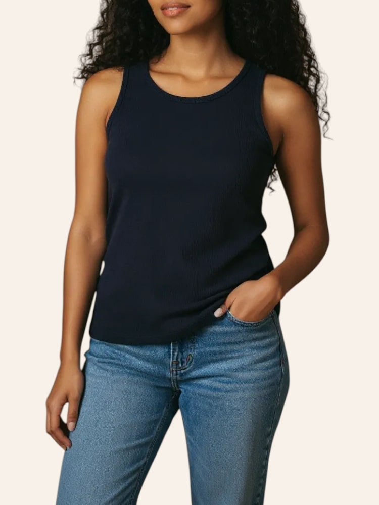 Com decote arredondado e alças largas, a peça valoriza o colo e garante sustentação, sendo perfeita tanto para usar sozinha em dias quentes quanto como base para sobreposições em produções mais elaboradas.